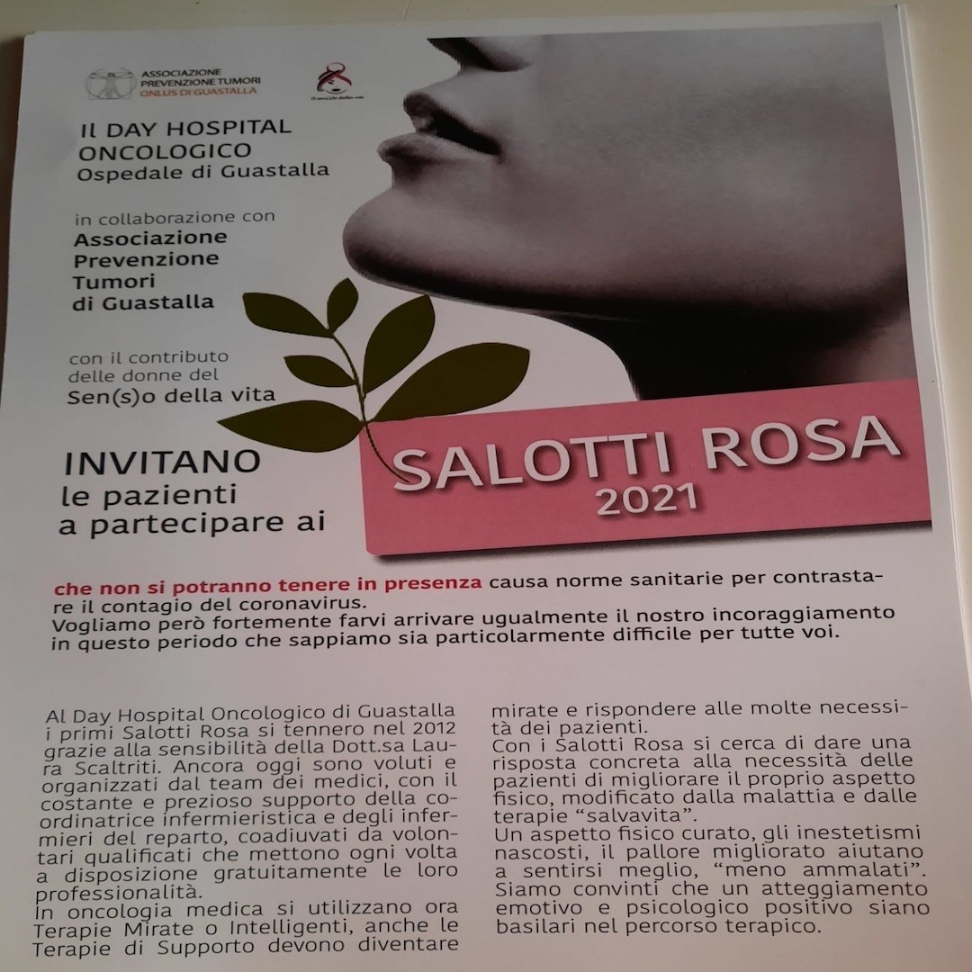 Martedì 1 Giugno 2021 in occasione dei Salotti Rosa, il reparto Day-Hospital Oncologico dell’Ospedale di Guastalla in collaborazione con Associazione Prevenzione Tumori Guastalla e con il contributo delle donne del Il sen-so della vita, hanno donato dei ventagli come incoraggiamento per contrastare l’insorgere di vampate di calore nelle donne in menopausa in cura chemioterapica, in questo periodo che sappiamo sia particolarmente difficile per tutte le donne.